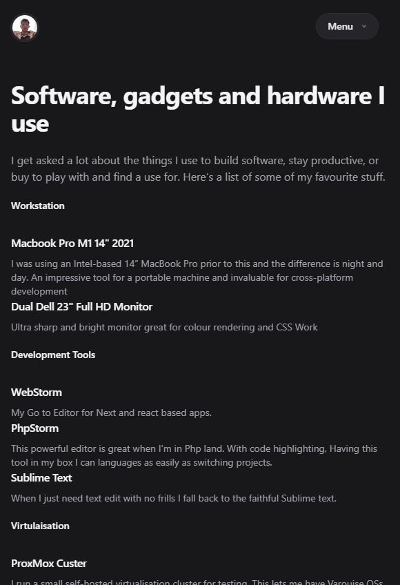 This Site was developed using the latest tools in my skillset. This site has been created using NEXT.JS 14. I am integrating with a 3rd Party API-based CMS to edit and update non-code components.